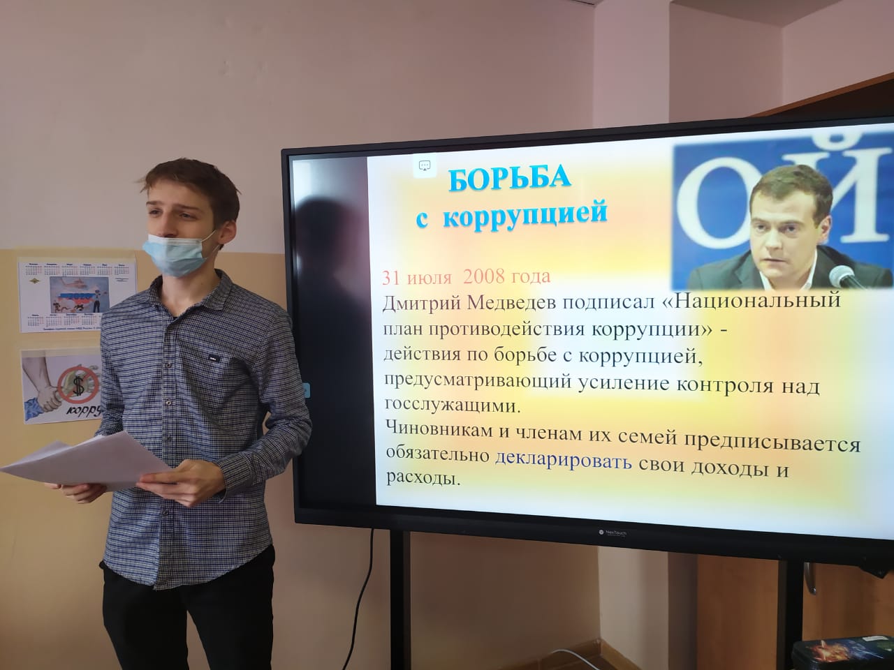 10.12.2020В рамках реализации плана мероприятий, приуроченных к Международному дню борьбы с коррупцией, в МБОУ «СОШ 4» г. Аргун, среди учащихся 9-11 классов, учителем обществознания Башировым М.-Х. А. были проведены беседы и лекции на темы: «Скажем коррупции - нет!», «Роль СМИ в борьбе с коррупцией», «Роль гражданского общества в противодействии коррупции». Были проведены встречи с представителями правоохранительных органов. Заведующей библиотекой Юсуповой проведена выставка газет антикоррупционной направленности.