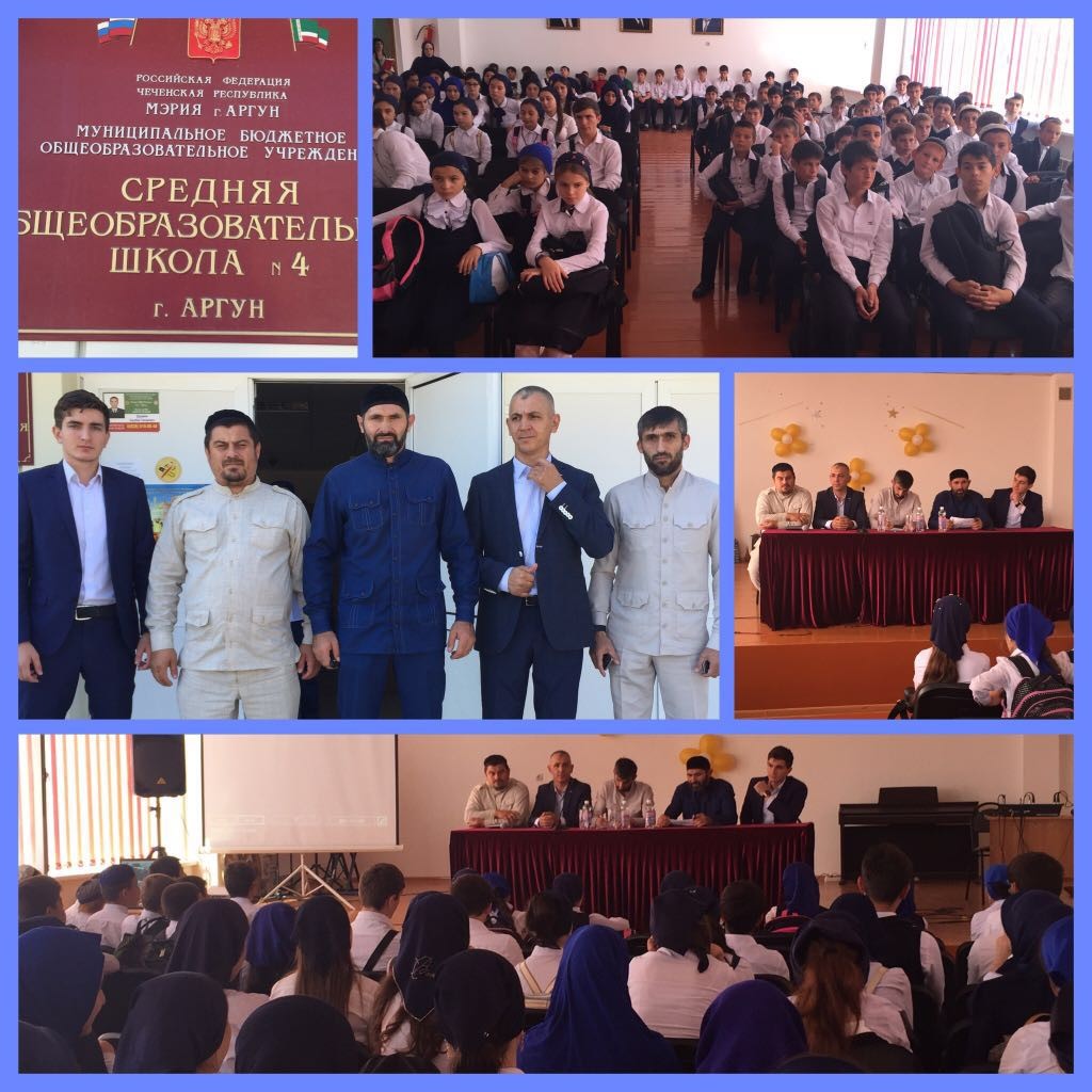 мероприятия по реализации данной концепции, проведены классные часы, профилактические беседы, тренинги на темы: «Духовные ценности Чеченской республики», «Интернет во благо», «Профилактика экстремизма и Терроризма», «Профилактика наркомании в молодежной среде». Беседы проходили под руководством Зам.директора по ИКТ Исмаилова М.Ш., педагога дополнительного образования Джамалдинова А-М.Х. совместно с представителями муфтията.