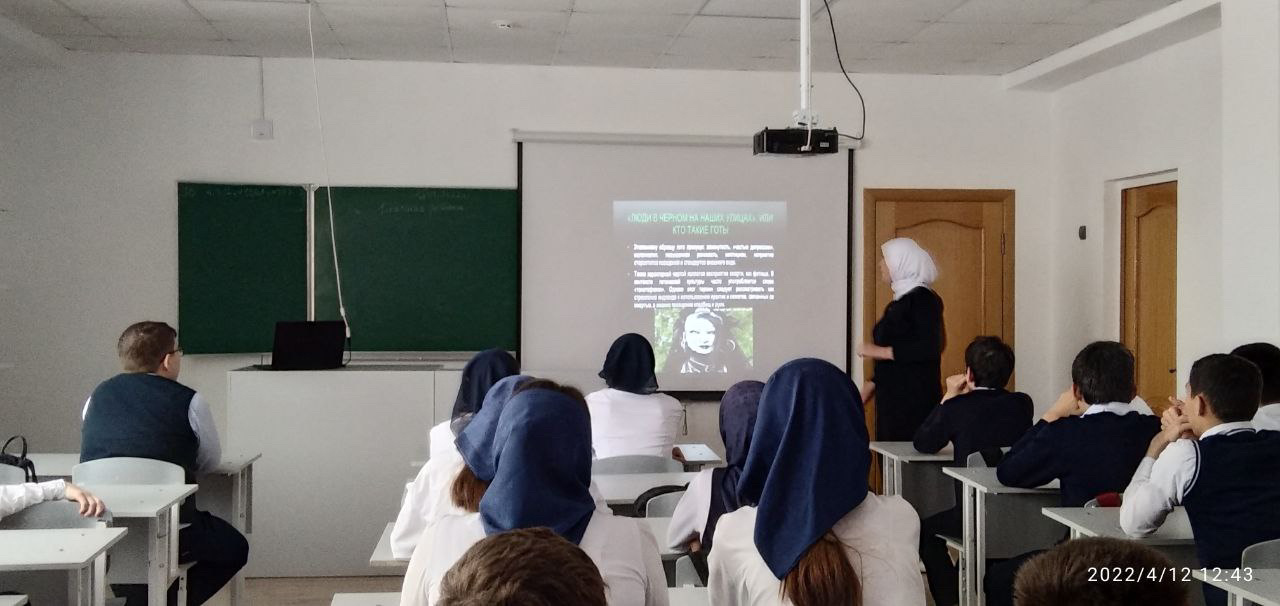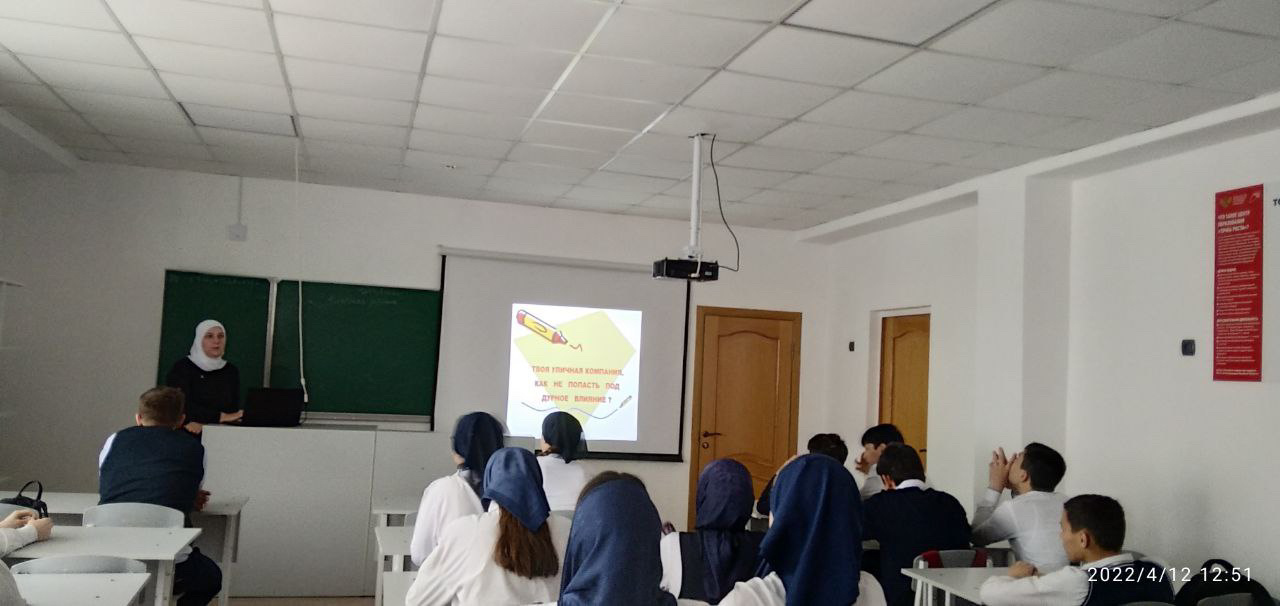 С целью предупреждения об опасностях связанных с попаданием несовершеннолетних в группы криминальной направленности, воспитания отрицательного отношения к пагубным привычкам, среди учащихся 8-х классов, была проведена беседа-диспут "Твоя уличная компания. Как не попасть под дурное влияние?"