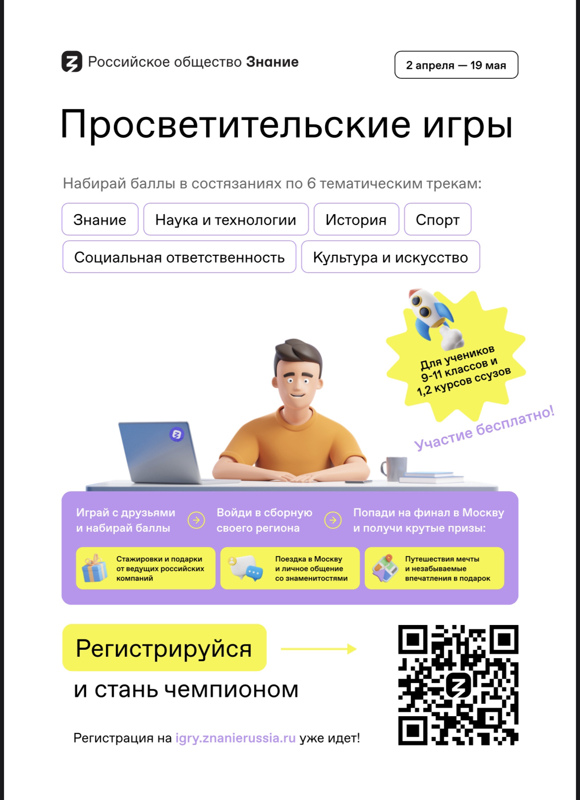 Министерство просвещения Российской Федерации в рамках сотрудничества с Российским обществом «Знание» информирует о проведении 17-19 мая 2022 г. федерального Просветительского марафона «Новые горизонты» Российского общества «Знание» и приуроченных к нему всероссийских Просветительских игр для старшеклассников 2 апреля - 19 мая 2022 года.