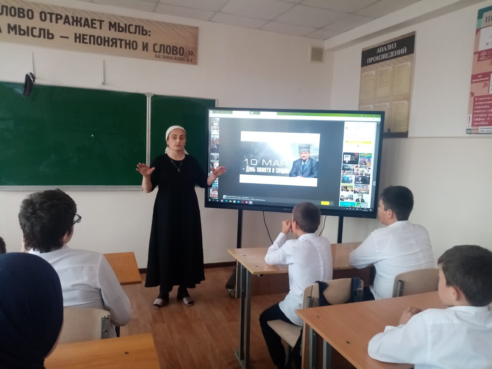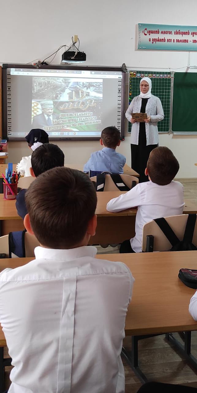 Во исполнении плана по духовно- нравственному воспитанию подрастающего поколения Чеченской Республики и на основании общешкольного плана по воспитательной работе, в рамках мероприятий, посвящённых Дню памяти и скорби народов Чеченской Республики с 5 по 7 мая 2022г прошли мероприятия, посвящённые Дню памяти и Скорби чеченского народа. 10 мая- печальная дата для всего нашего народа. Это день памяти и скорби. В этот день, восемнадцать лет назад, погиб Первый Президент Чеченской Республики, Герой России Ахмат-Хаджи Кадыров.Жизнь первого президента, отданная во имя свободы, принесла мир и спокойствие на чеченскую землю.Он всегда был, есть и будет Народным Героем России.Его поступки навечно останутся в сердцах народа.Вечная ему память!