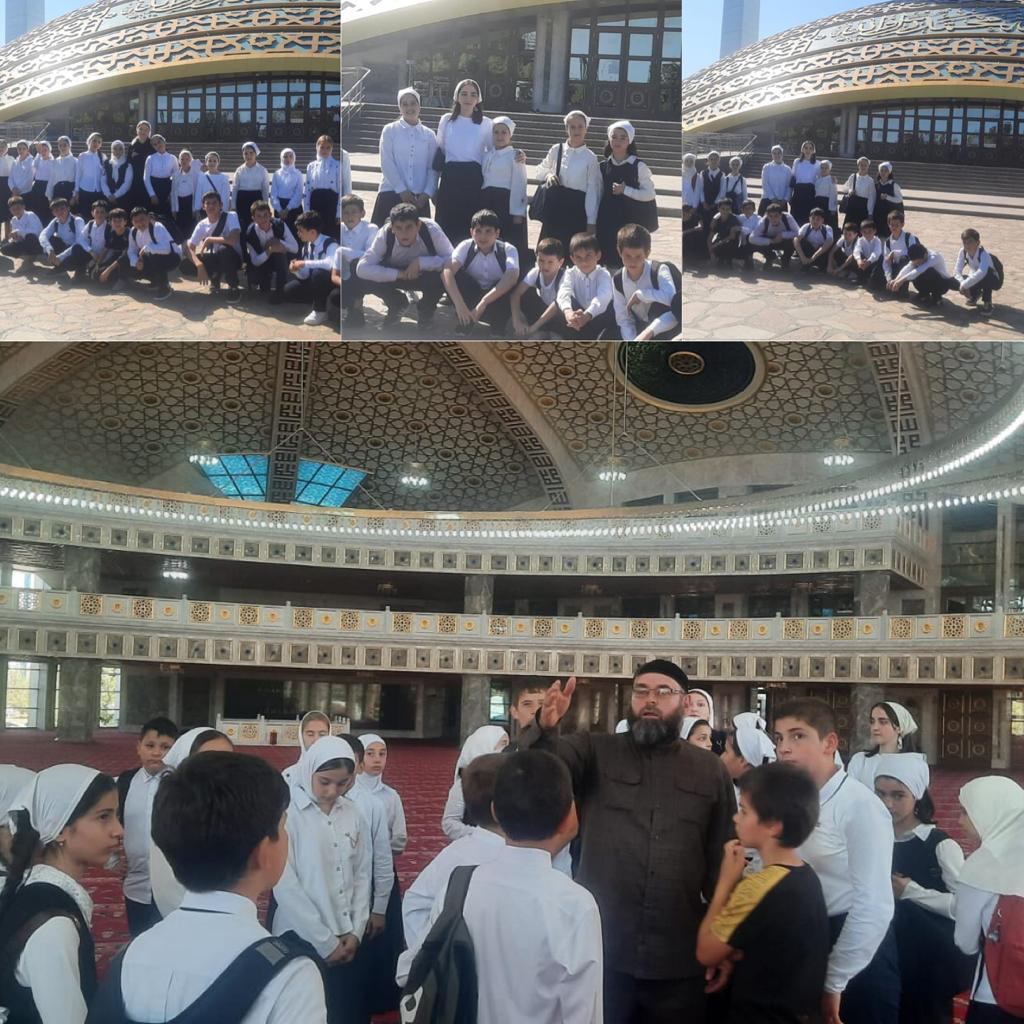1 октября в рамках реализации единой концепции духовно- нравственного воспитания Чеченской Республики с целью формирования у учащихся гражданско-патриотических качеств была организована экскурсия для учащихся 5-ых классов в мечеть " Сердце Матери" имени Аймани Кадыровой.