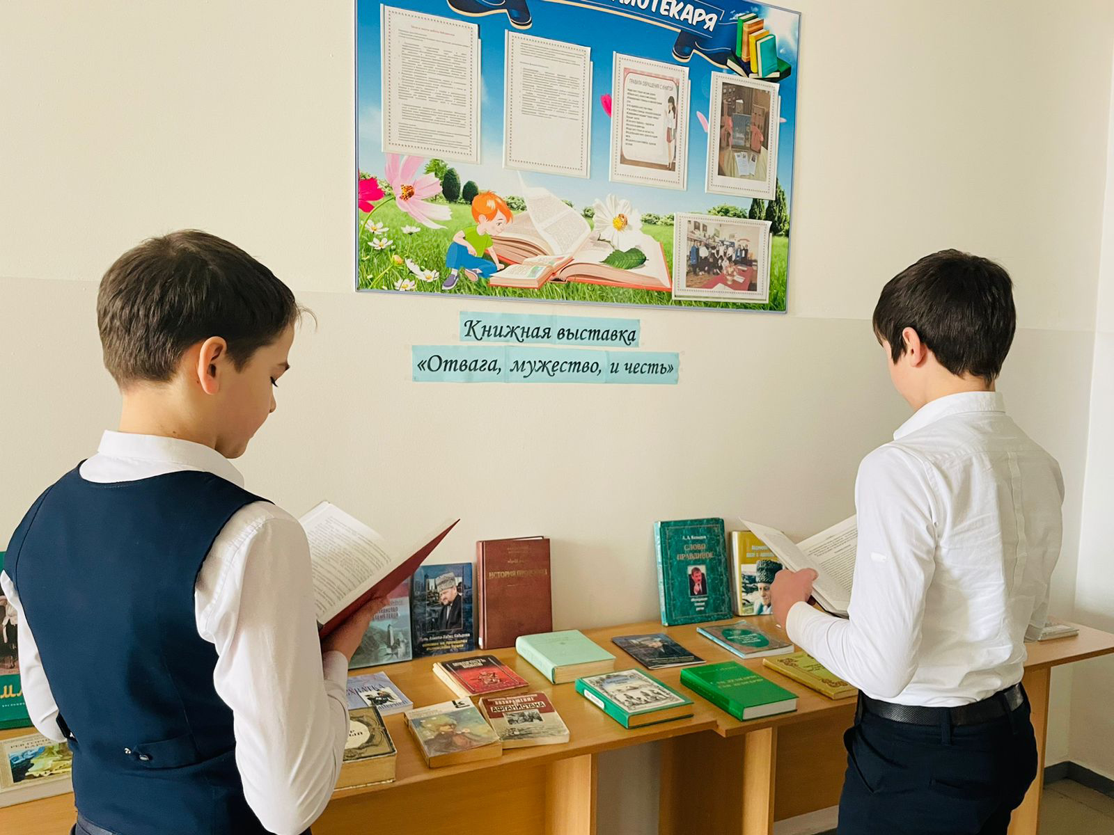В преддверии Дня Защитника Отечества, в библиотеке МБОУ «СОШ 4 г. Аргун» состоялась выставка «Отвага, мужество и честь».