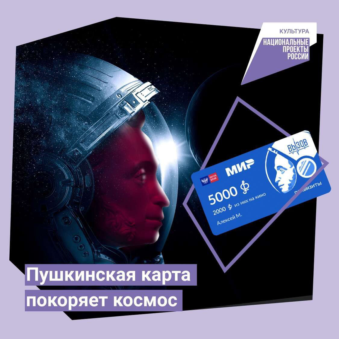 Пушкинская карта изменит дизайн по случаю выхода первого художественного фильма, снятого в космосе