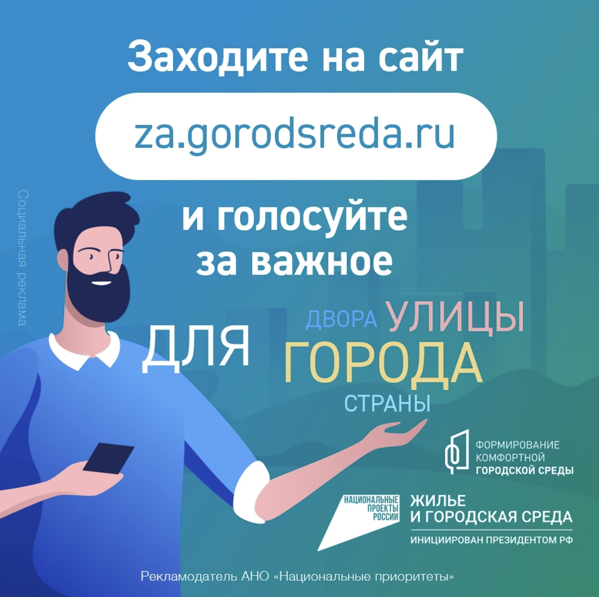 15 апреля по всей стране стартует Всероссийское онлайн-голосование по выбору объектов благоустройства по нацпроекту «Жилье и городская среда», инициированным президентом России. До 31 мая на платформе za.gorodsreda.ru каждый гражданин России в возрасте от 14 лет сможет отдать свой голос за ту или иную территорию или дизайн-проект по благоустройству, который будет реализован в приоритетном порядке в следующем году.