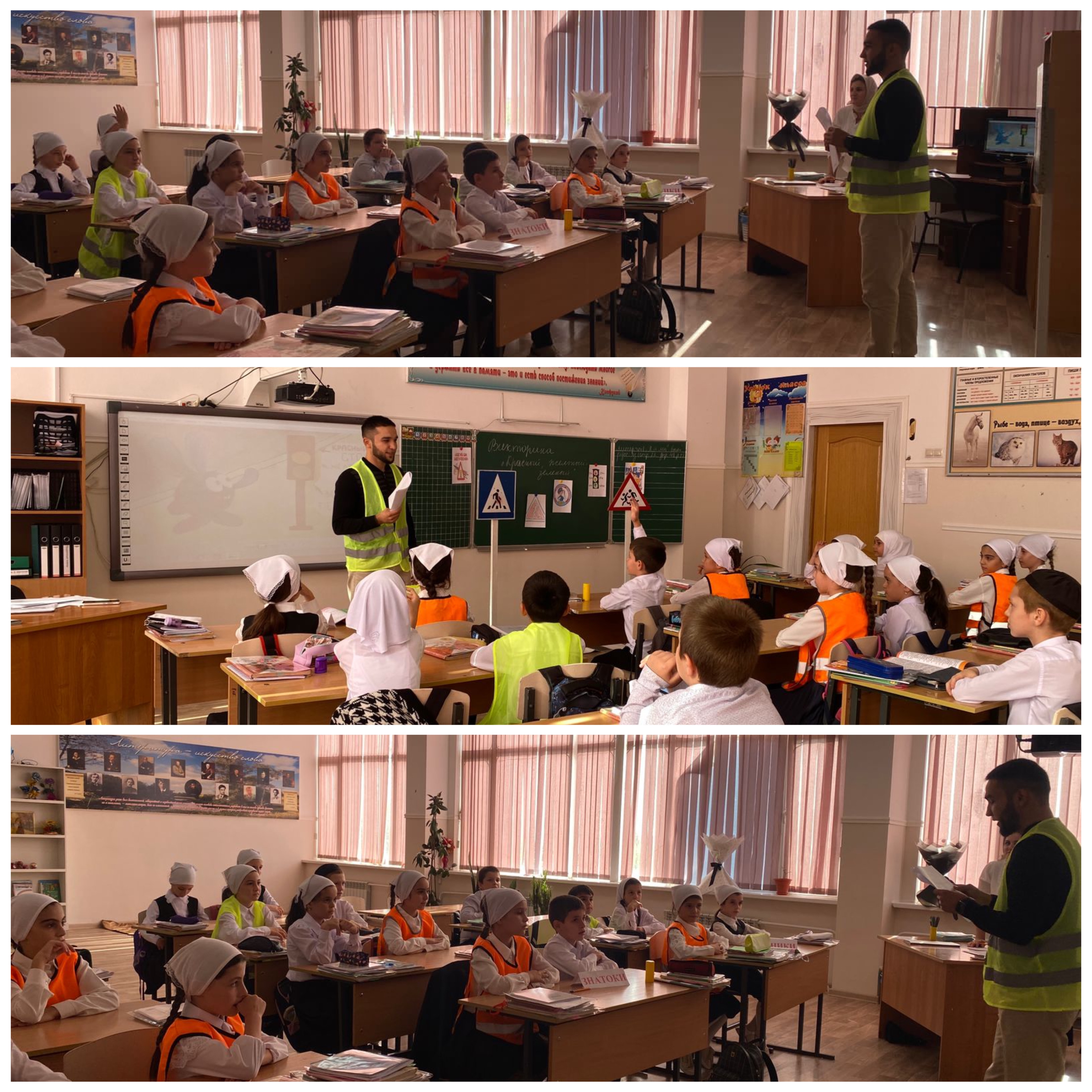 13 сентября в МБОУ «СОШ №4» г. Аргун учителем ОБЖ Шовхаловым Р.Р. была проведена с целью профилактики детского дорожно-транспортного травматизма, популяризации соблюдения правил дорожного движения, для учащихся 3-ых классов викторина по ПДД «Красный. Желтый. Зеленый». В позновательной викторине «Красный. Желтый. Зеленый» учащиеся показали свои знания в переходе проезжей части по светофору….