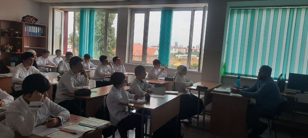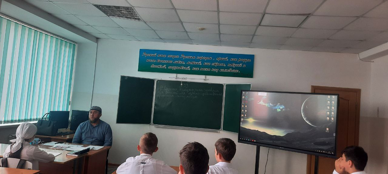 С целью укрепления института семьи, возрождения и сохранения духовно- нравственных ценностей семейных отношений, воспитания любви к семейным традициям и развития творческих и коммуникативных способностей педагогом- организатором по духовно- нравственному воспитанию Арсанукаевым Асланом были проведены беседы для учащихся 5- 8 классов на тему: "Роль и предназначение женщин в Исламе"