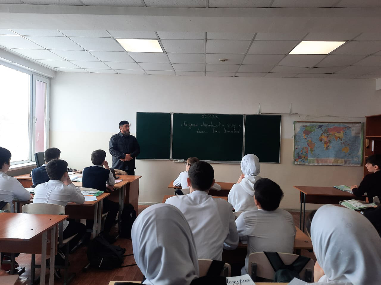 25 января педагогом- организатором по ДНВ Арсанукаевым И.Е с обучающимися 7-8-ых классов была проведена беседа на тему: " "Ислам о личной гигиене мусульманина".Цель и задачи беседы для получения целостного представления о мусульманской культуре в современном обществе. Знакомство обучающихся с основами Исламской культуры.Развитие способностей к общению в полиэтнической и многоконфессиональной среде на основе взаимного уважения и диалога во имя общественного мира и согласия...