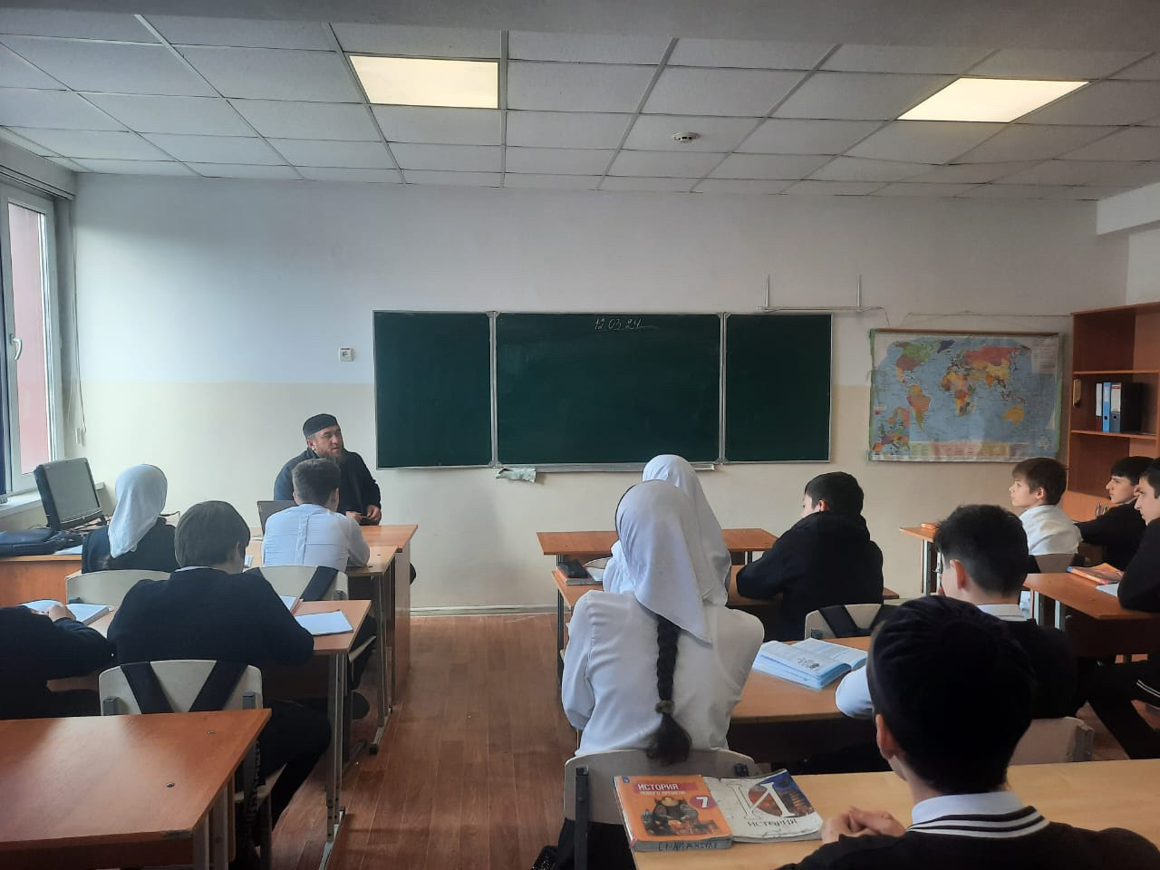 В рамках реализации Единой Концепции по духовно-нравственному воспитанию и развитию подрастающего поколения , с целью Профилактики дорожно- транспортных происшествий с 11 по 13 марта педагогом- организатором по ДНВ были проведены беседы с обучающимися 6- 7 -ых классов на тему :"Ислам о соблюдении норм поведения и правил дорожного движения ", отражающий суть и содержание опасности передвижения в весенний период.Ислам Есаевич отметил, что наибольшая угроза исходит из- за невнимательности участников дорожного движения....