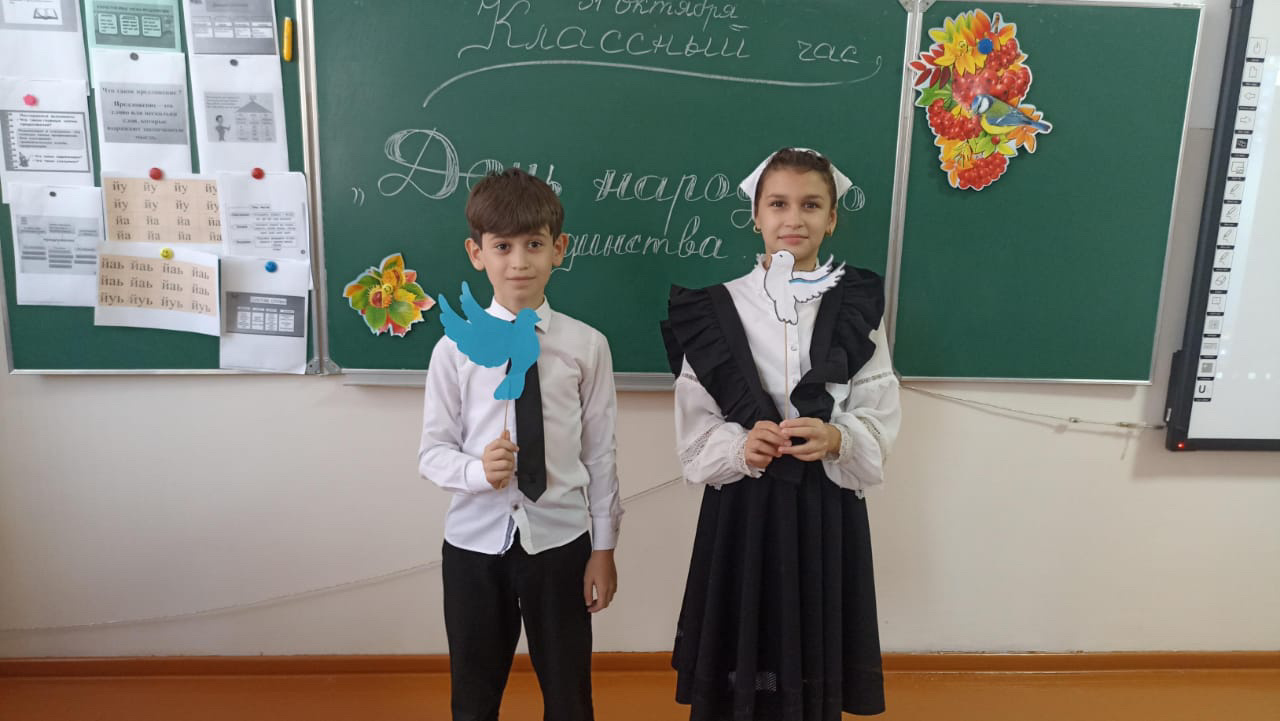 На мероприятии ребята отгадывали загадки, отвечали на вопросы викторины, соединили части пословиц о Родине, о дружбе, собрали цветок единства, на лепестках которого написаны различные значения слова «единство».