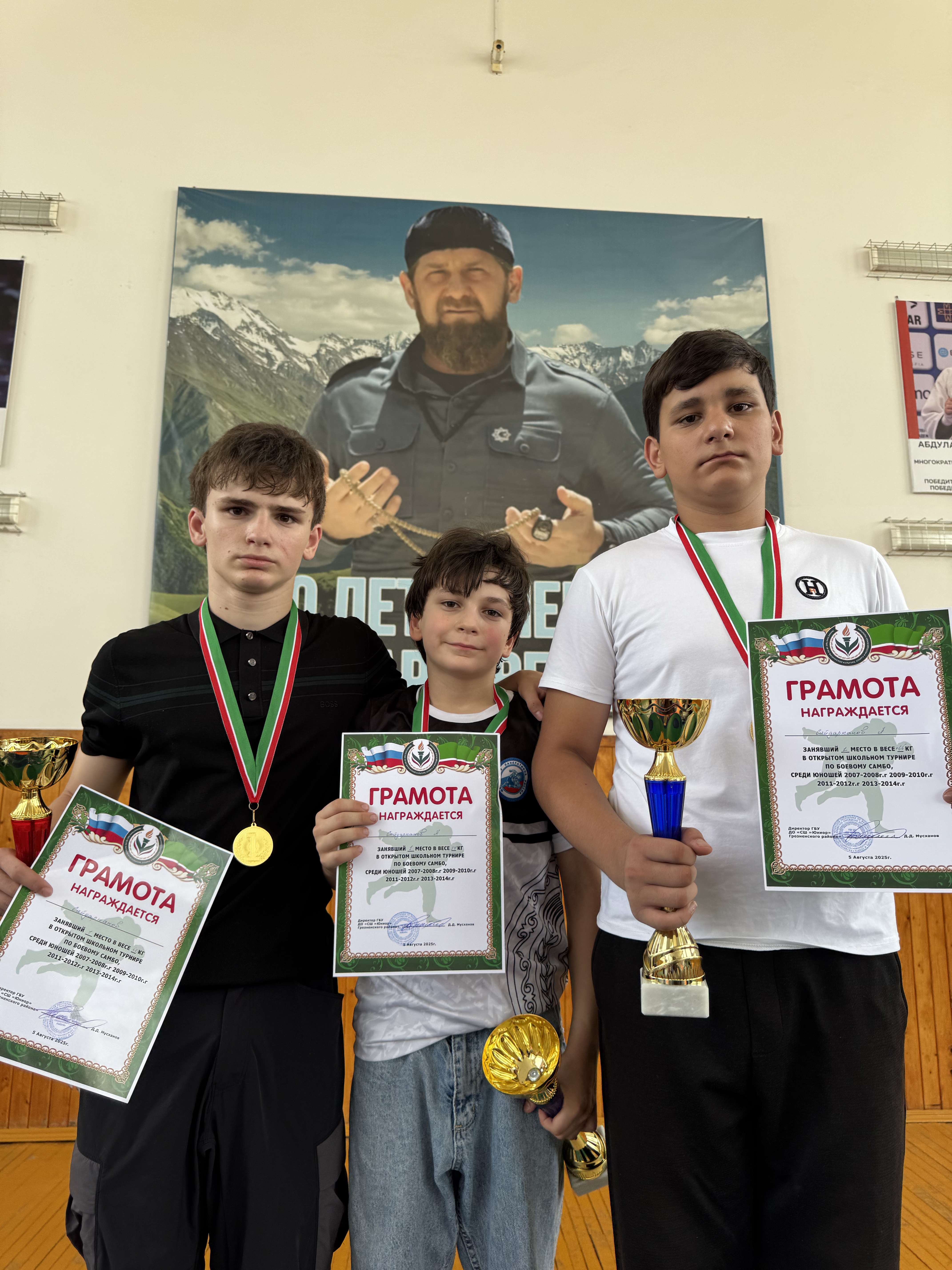 Воспитанники школьной секции боевого самбо МБОУ СОШ №4 г. Аргун, работающей в рамках всероссийского проекта В.В. Путина «Самбо в школу», показали блестящие результаты и стали чемпионами в своих весовых категориях: