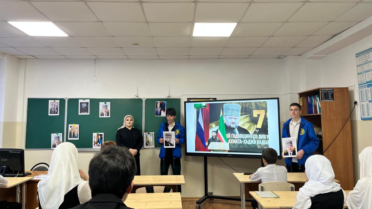 23.08.202574-й годовщине со Дня рождения Первого Президента ЧР, Героя России А-Х. Кадырова 22 августа 2025 года советник директора по ВР Исмаилов М- Х-А. с патриотическим отрядом « Юные Кадыровцы» посетили Мемориальный комплекс Славы имени А-Х. Кадырова. Педагог- библиотекарь Юсупова С. С. провела в библиотеке исторический час на тему: « Ахмат-Хаджи Кадыров- Герой нашего времени», была проведена беседа про жизнь Ахмата- Хаджи Кадырова. Участники мероприятия прочитали стихотворения , посвященные 74-й годовщине со Дня рождения Первого Президента Чеченской Республики, Героя России Ахмат- Хаджи Кадырова…