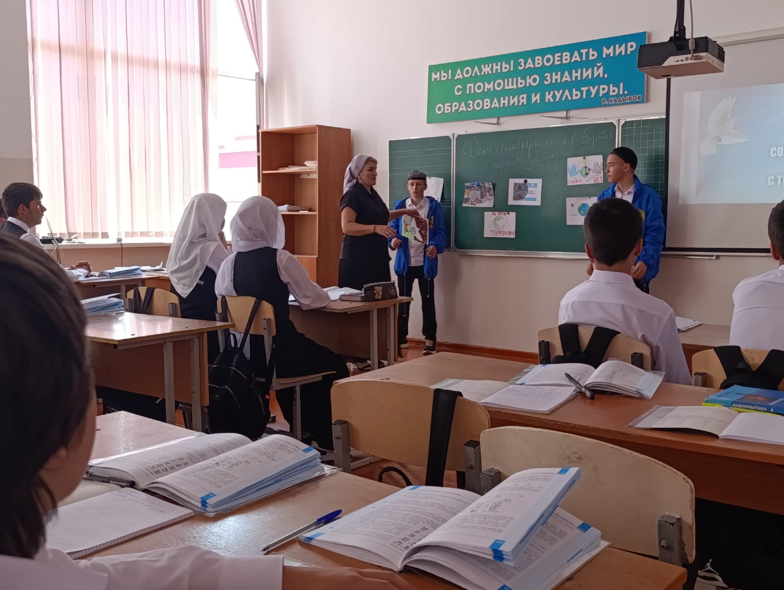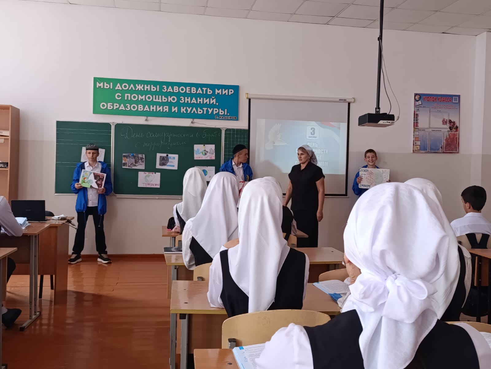 03.09.2025В России ежегодно 3 сентября отмечается особая дата- День солидарности в борьбе с терроризмом. Вспоминают россияне 3 сентября дерт Беслана и других терактов, происходивших в столице, а также в Чечне, Дагестане и других регионах нашей страны. В МБОУ «СОШ 4» г. Аргун к этой дате был приурочен ряд мероприятий, посвященных проблемам борьбы против терроризма и экстремизма:Классные часы на тему: « Мы хотим в мире жить», открытые уроки на тему: «Терроризм- угроза человечеству», Книжная выставка « 3 сентября/ День солидарности в борьбе с терроризмом»