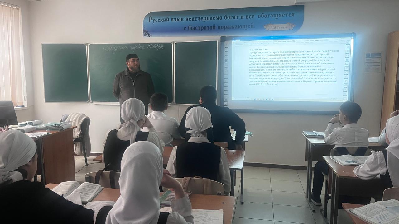 06.11.2025В рамках реализации Единой концепции духовно- нравственного воспитания и развития подрастающего поколения Чеченской Республики педагог- организатор по ДНВ Арсанукаев И. Е. совместно с классными руководителями 6 ноября 2025 года провели классные часы и беседы для учащихся на тему: «Ислам об отношении к родителям.»Религия- особая форма осознания мира, которая основана на вере в сверхъестественное, включает в себя моральные нормы и типы поведения, обряды, культовые действия объединяет людей в сообщества. Каждый родитель видит в своем ребенке на только радость глаз и продолжение потомства, но и заботу о себе в старческом возрасте.Однако для этого нужно воспитать в детях подобное отношение. От нашего воспитания напрямую зависит то, как дети , когда они станут самостоятельными, будут относиться к престарелым родителям. ..
