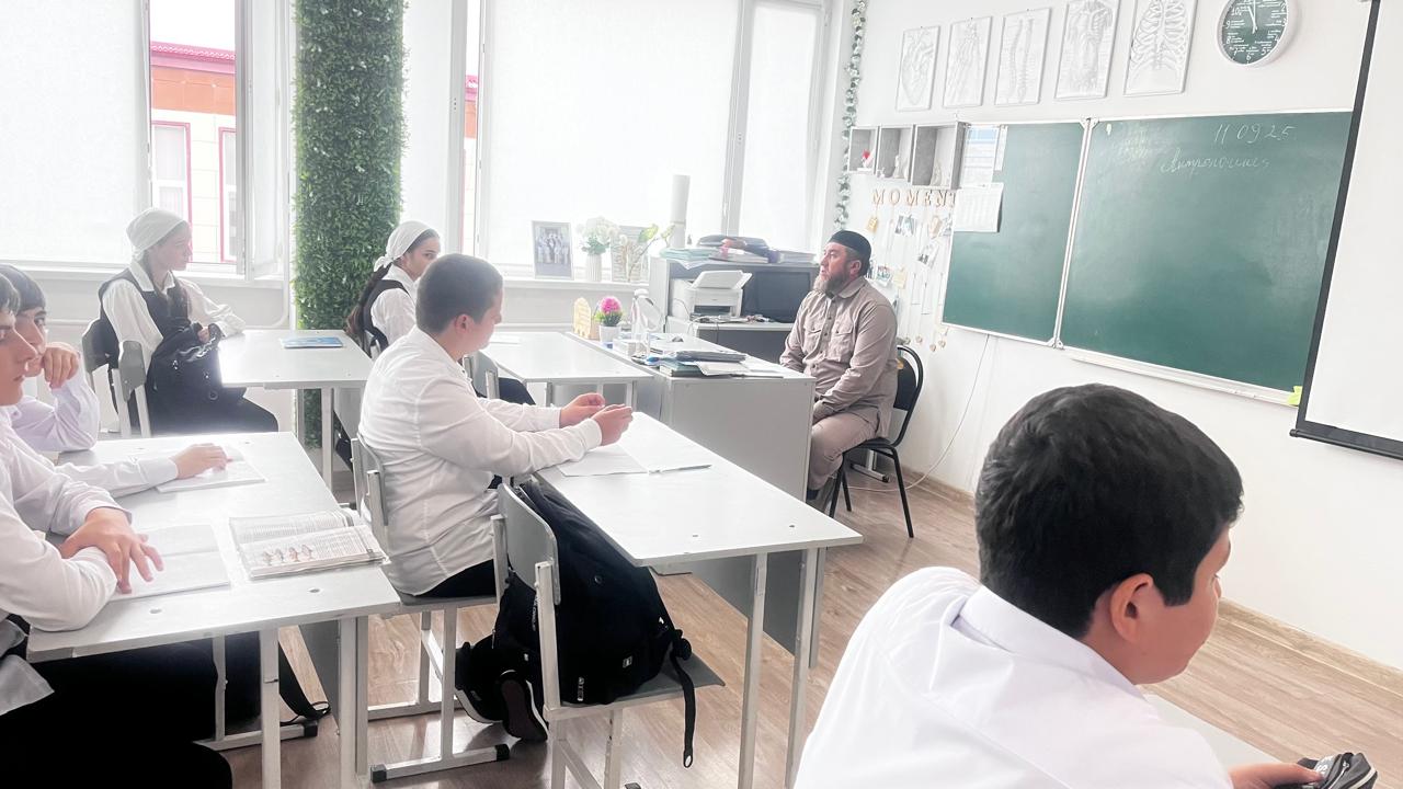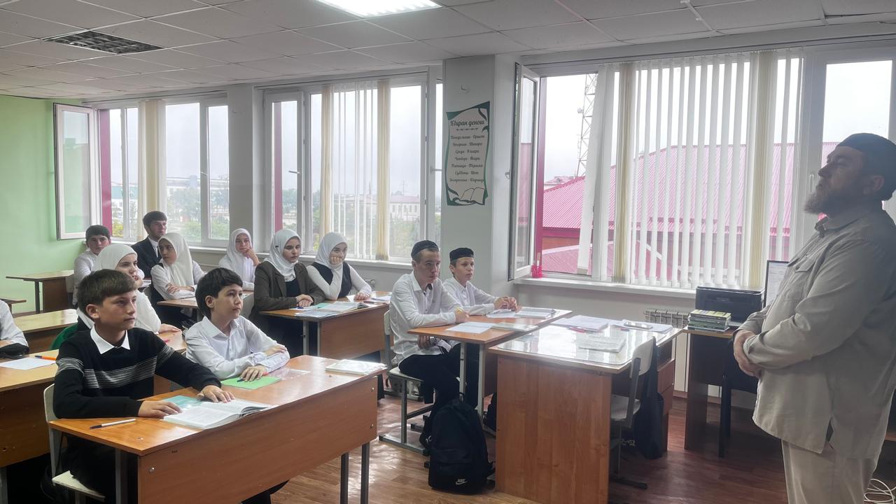 20.11.2025В рамках реализации Единой концепции духовно- нравственного воспитания и развития подрастающего поколения Чеченской Республики педагог- организатор по ДНВ Арсанукаев И. Е. 20 ноября 2025 года провел беседу с обучающимся 8-11-ых классов на тему: «Ислам - религия мира и добра». Ислам Есаевич поговорил о религии Ислам, познакомил с основами вероучения в Исламе, о том, что Ислам несет добро, милосердие, терпеливое отношение к окружающим и добавил, что Ислам происходит от слова « Салям», что значит мир и благополучие. Благополучие предполагает счастье человека, которое в свою очередь зависит от знания, убеждения, здоровья, свободы, справедливости, благовоспитанности и прочих положительных характеристик личности и общества, возможных только при наличии прочного мира между людьми и народами…