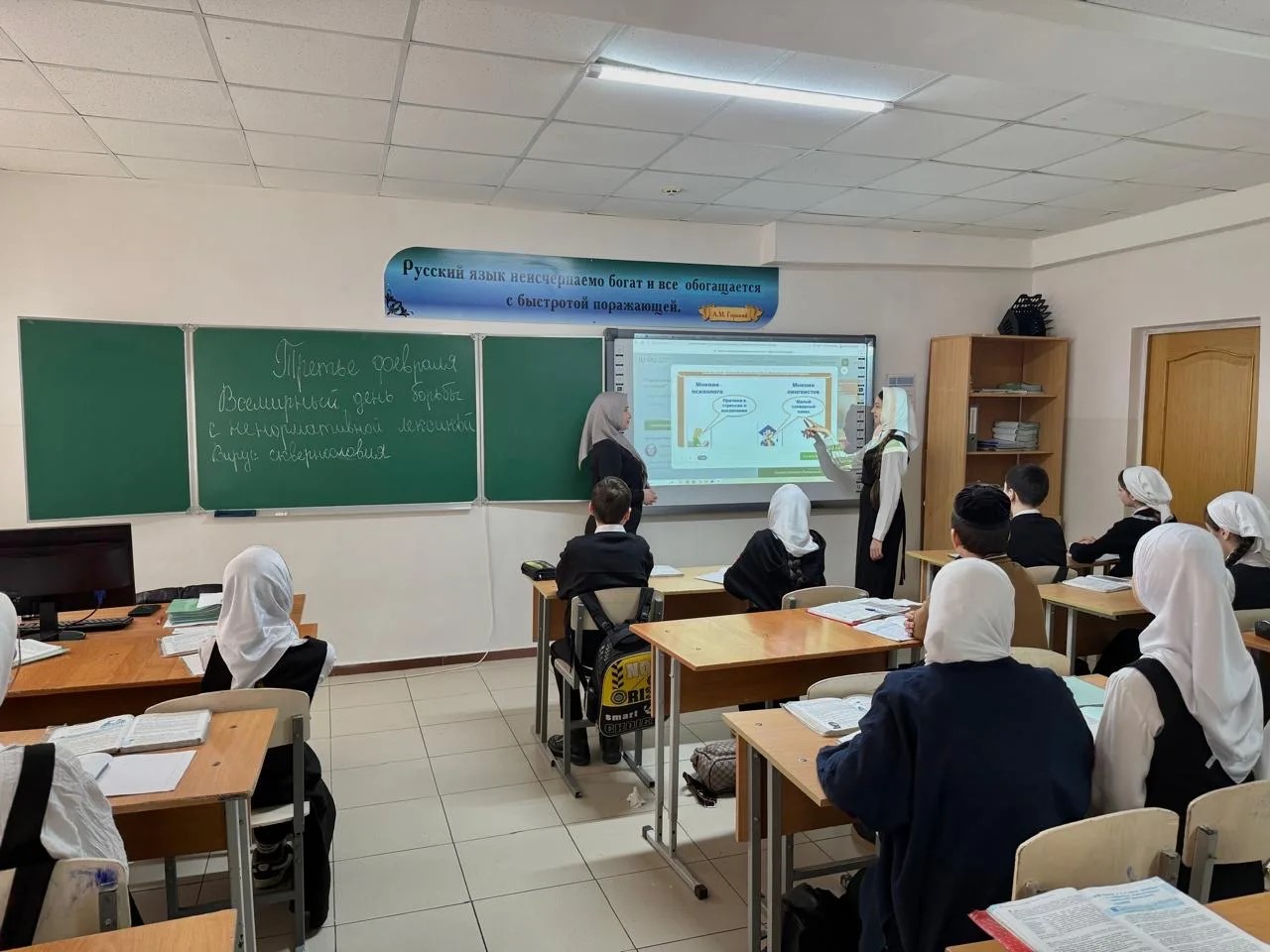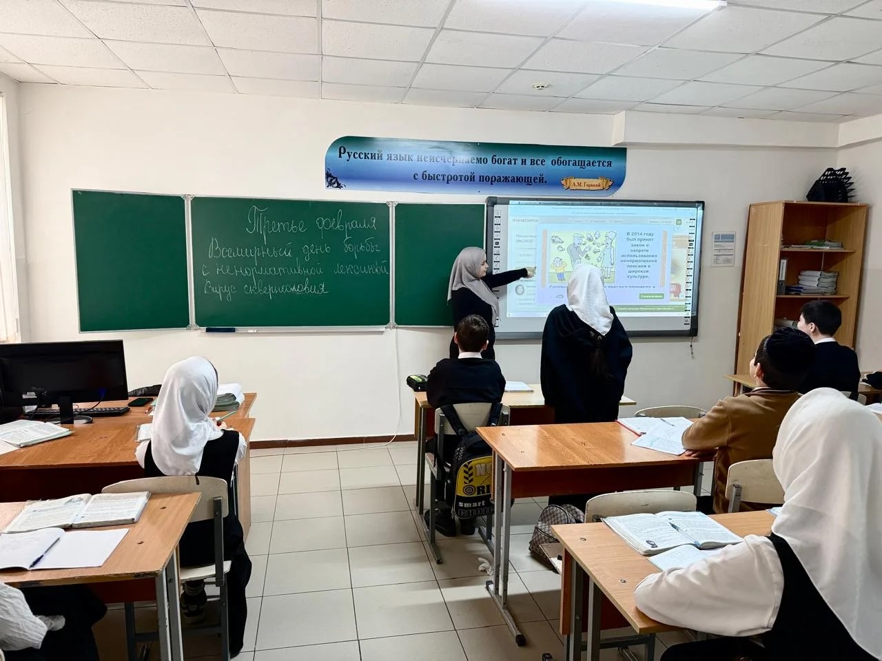 3 февраля 2026 г. учителем русского языка и литературы Юсуповой С.С был проведен информационный час «Вирус сквернословия» для учащихся 8-ых классов., посвященный дню борьбы с ненормативной лексикой. На мероприятии было рассказано о современном состоянии культуры речи в нашей стране и проблеме широкого распространения нецензурной лексики среди населения всех возрастов, а также об истоках появления нецензурных слов и выражений, о их месте в жизни людей. В завершение ребята сделали вывод – чтобы сохранить богатый русский язык и русскую речь, нужно отказаться от уродливой нецензурной брани в своей речи.