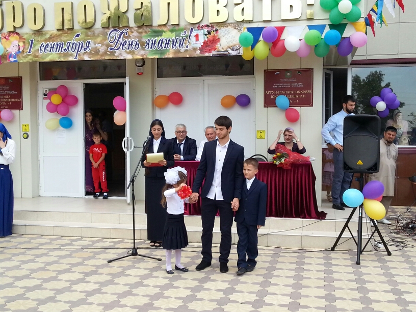 1 сентября — начало нового учебного года для всех российских школьников, студентов, учителей и преподавателей. Традиционно в этот день в школах проходят торжественные линейки, классные часы, уроки Знаний, Мира, безопасности, мужества. Так же МБОУ «СОШ №4» открыла свои двери для обучающихся. Во дворе школы состоялась торжественная церемония, посвященная Дню знаний и началу нового 2015-2016 учебного года.С приветственным словом к обучающимся, учителям и гостям школы обратился директор школы Салатаев Ш. Ш. Почетными гостями школы в этот день стали: Тимирсултанов Н.Г. (заместитель главы города Аргун), Масаева Х.С.( представитель департамента образования) и Адаев .Н. (родитель).Подготовила торжественное мероприятие заместитель директора по воспитательной работе Мутаева Н.В.В ходе мероприятия выступали первоклассники, которые с волнением читали стихи. С напутствующими слова приветствовали первоклашек ученики старших классов. Завершила линейку вокалистка ЦДТ города Аргун Бейтельгереева Хадижат.
