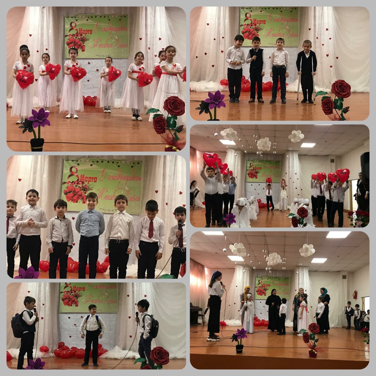 06.03.19г. в МБОУ «СОШ 4» г. Аргун, прошли праздничные мероприятия, посвящённые Международному женскому дню 8 марта. Классными руководителями были проведены классные часы, посвящённые дорогим женщинам-мамам и бабушкам. Так же, во 2-4 классах были проведены конкурсы открыток, сделанных своими руками - корзинки и вазы с цветами. В актовом зале, учителями начальной школы Тарамовой М.Я. и Гучиговой М.М. был проведён праздничный концерт, подготовленный учащимися 2-х «б» и «г» классов. В ходе концерта ребятами были пропеты песни, частушки, рассказаны стихи, исполнены красивые танцы, инсценировки, посвящённые самым дорогим мамам. Целью проведённых мероприятий явилось формирование у учащихся представления о значимости матери , воспитания уважительного и бережного отношения к мамам.