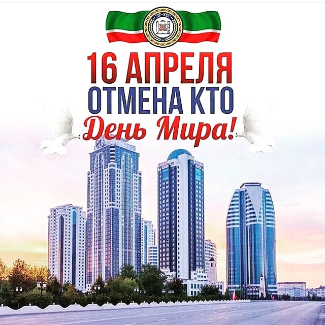 16.04.201916 апреля 2009 года Национальный антитеррористический комитет (НАК) передал экстренное сообщение об отмене режима контртеррористической операции на территории Чеченской Республики. Указом Главы Чеченской Республики, Р. А. Кадыровым, 16 апреля объявлен Днём Мира в Чеченской Республике В этот знаменательный день, поздравляем всех жителей нашей республики с праздником и желаем добра, благополучия, здоровья и процветания